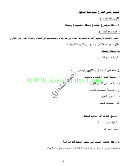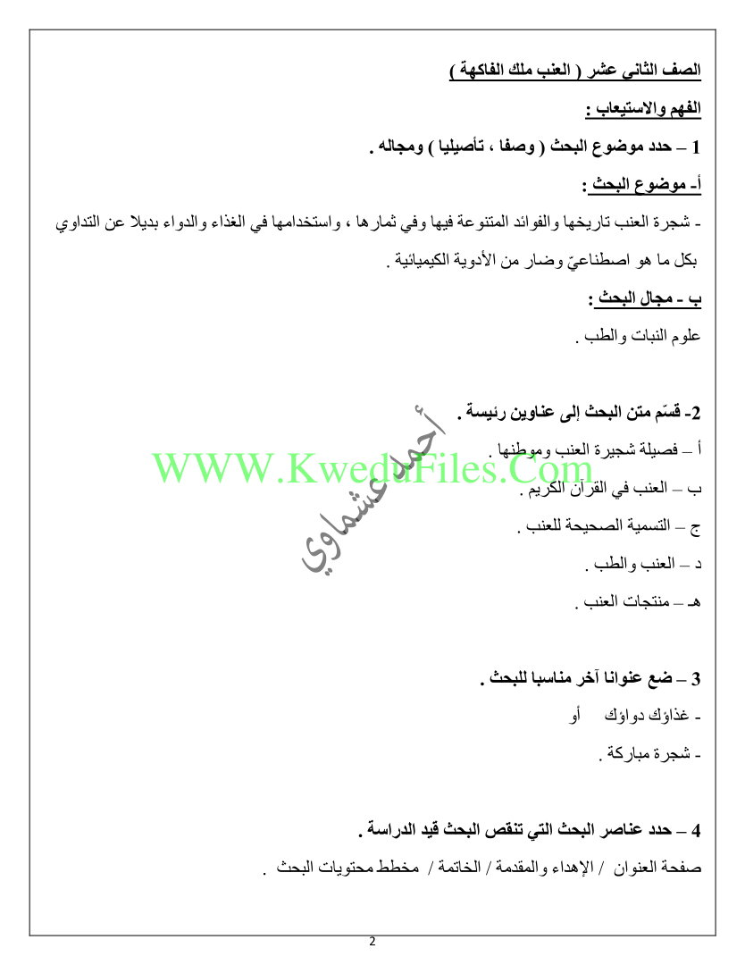 تم إيجاد الملف: مذكرة الدرس الثاني(العنب ملك الفاكهة)في مادة اللغة العربية