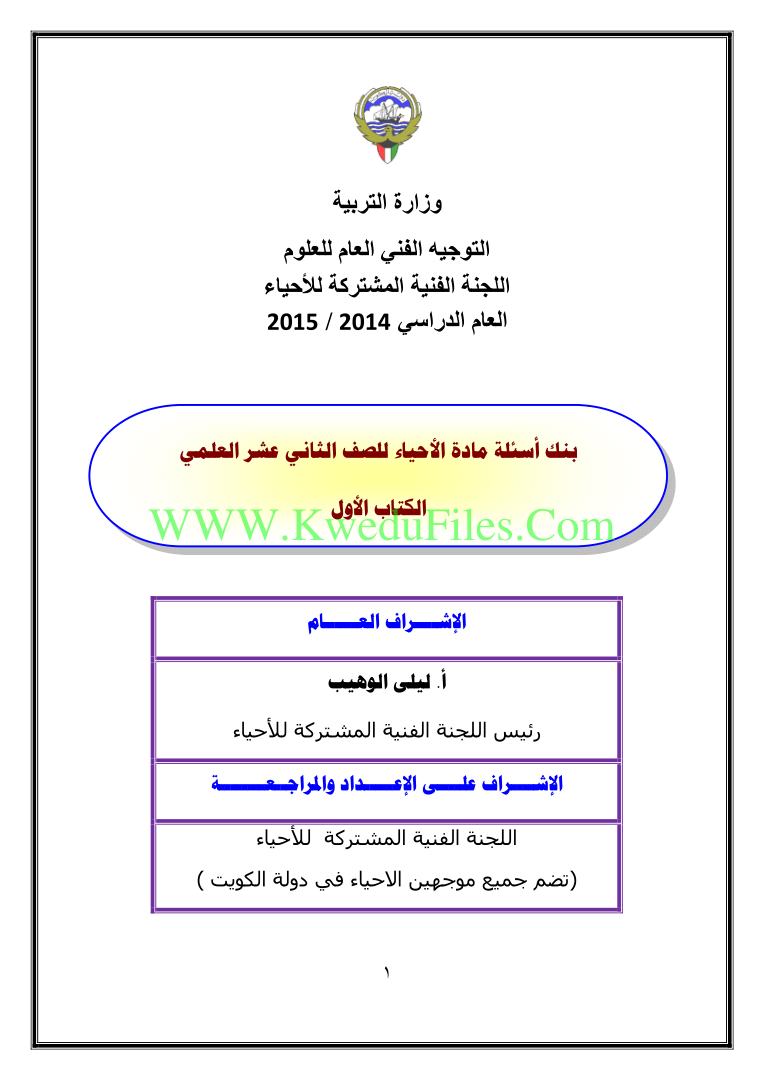 بنك اسئلة ممتاز في مادة الاحياء للصف الثاني عشر علمي للكورس الاول عدد اوراق هذا الملف 66ورقة مع العلم ان صور الملف ادناه لاتحتوي الا على جزء من محتوى الملف الذي ستجده كاملا" عند تحميله
