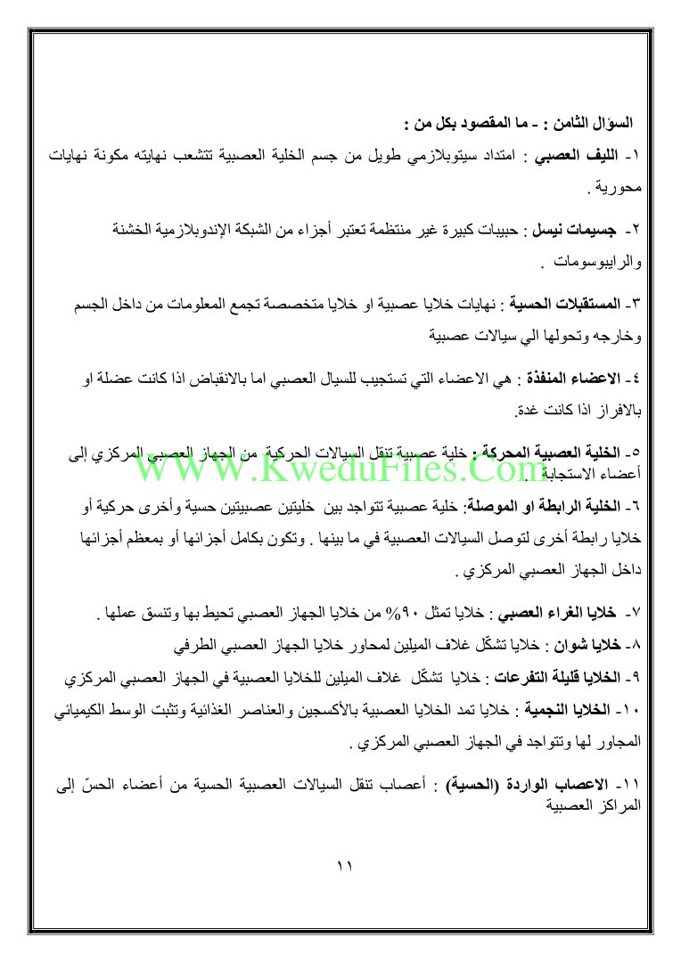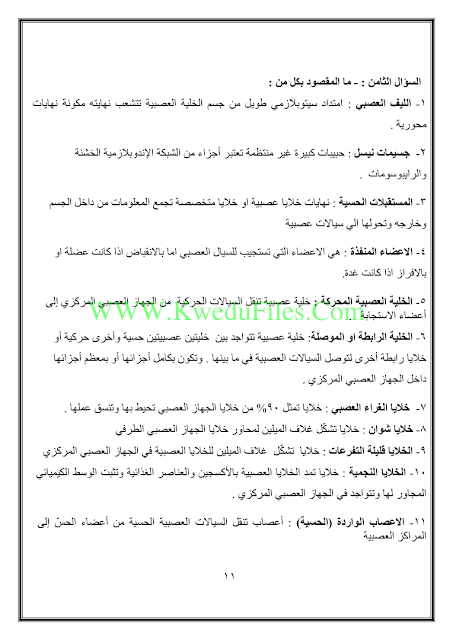 11. علوم, الفصل الأول, 2025-2026, تعريفات شاملة للجهاز العصبي والهرموني والمناعي والتناسلي