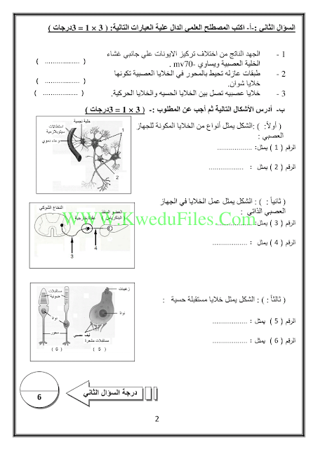 نموذج اجابة اختبارلنهاية الفترة الدراسية الاولى في مادة الاحياء(نموذج2) | ||