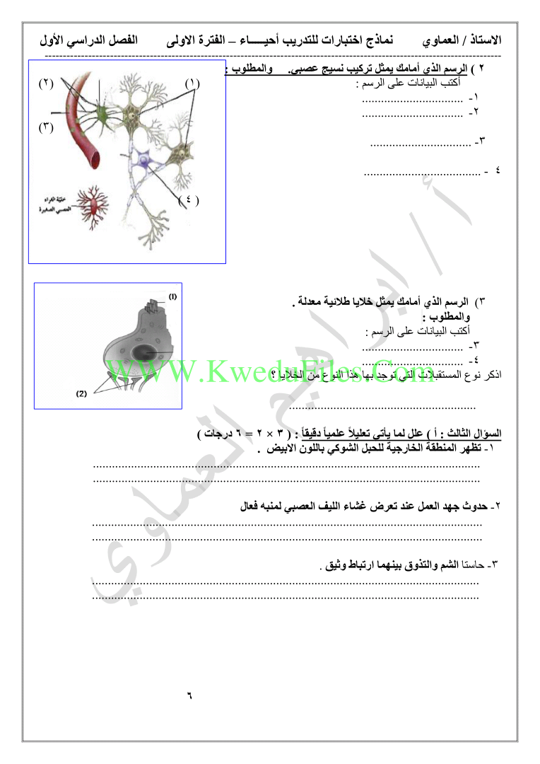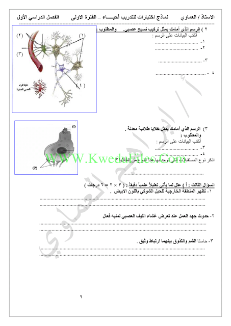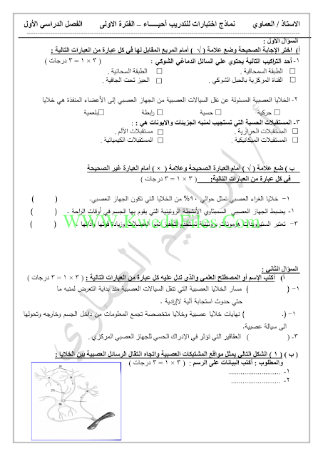 | نماذج اختبارات في مادة الاحياء - إعداد: ابراهيم العماوي | ||