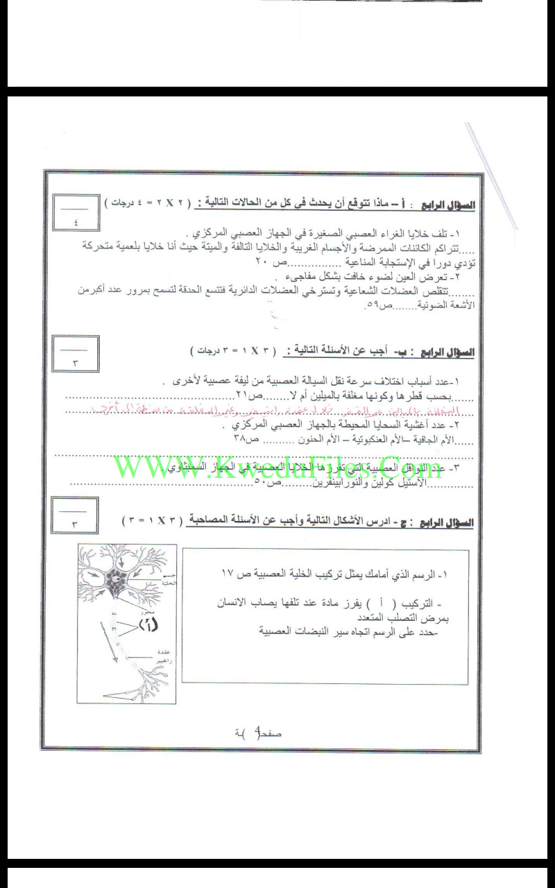 تم إيجاد الملف: نموذج اجابة اختبار في مادة الاحياء (منطقة حولي)