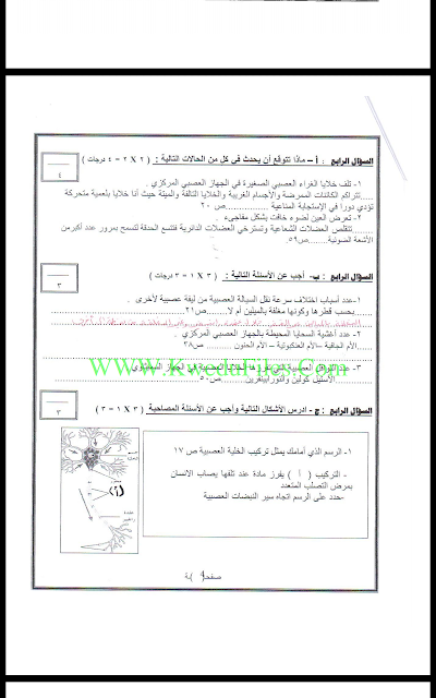نموذج اجابة اختبار في مادة الاحياء (منطقة حولي) - إعداد: منطقة حولي التعليمية | ||
