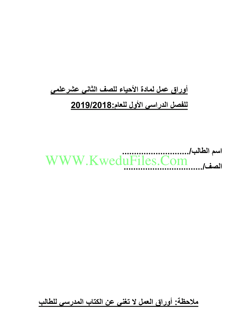 اوراق عمل مفيدة في مادة الاحياء للصف الثاني عشر العلمي للكورس الاول عدد اوراق هذا الملف 27ورقة مع العلم ان صور الملف ادناه لاتحتوي الا على جزء من محتوى الملف الذي ستجده كاملا" عند تحميله