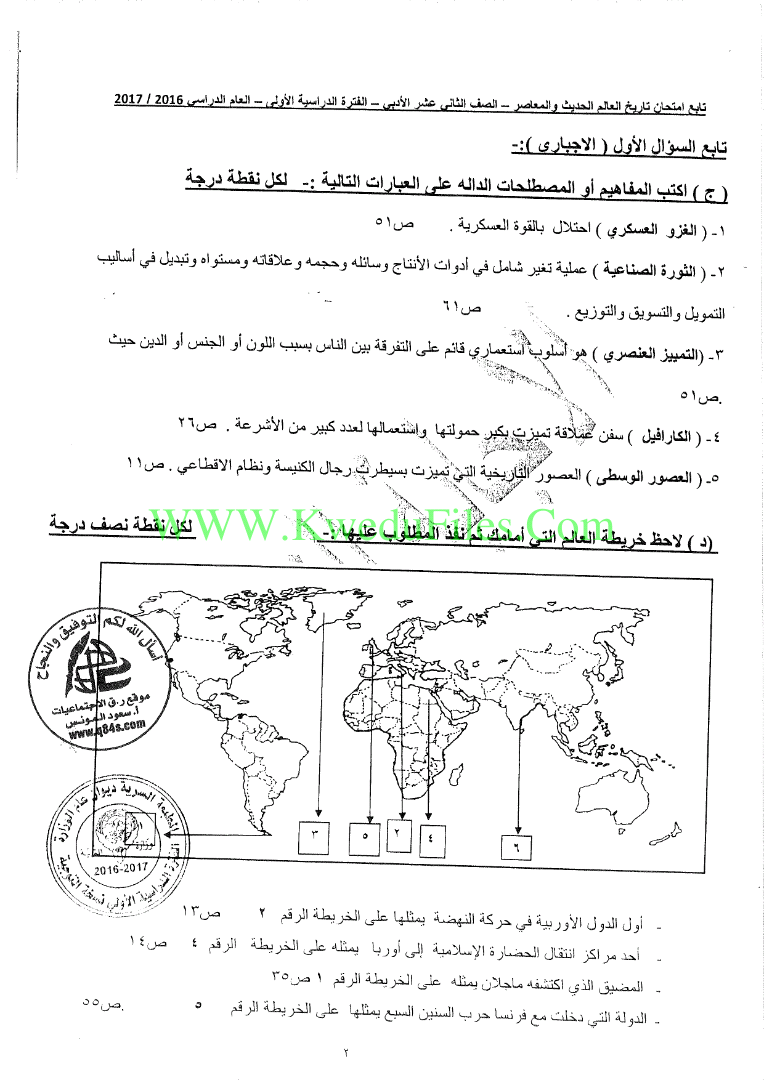 معلومات الملف: 6اوراق في مادة التاريخ للصف الثاني عشر الادبي للكورس الاول تتضمن نموذج اجابة اختبار كورس اول | ||