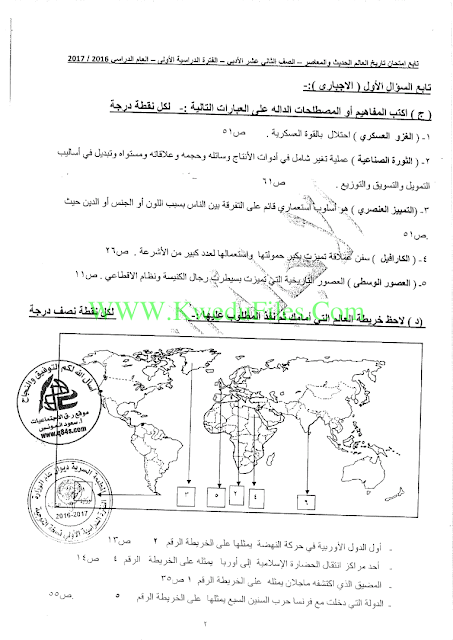 | امتحان نهاية الفترة الدراسية الاولى في مادة التاريخ | ||
