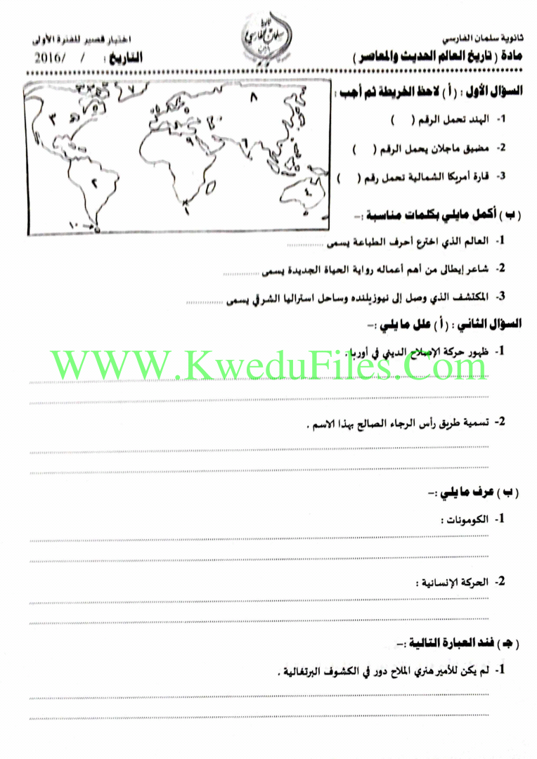 تم إيجاد الملف: نماذج اختبارات ممتازة في مادة التاريخ