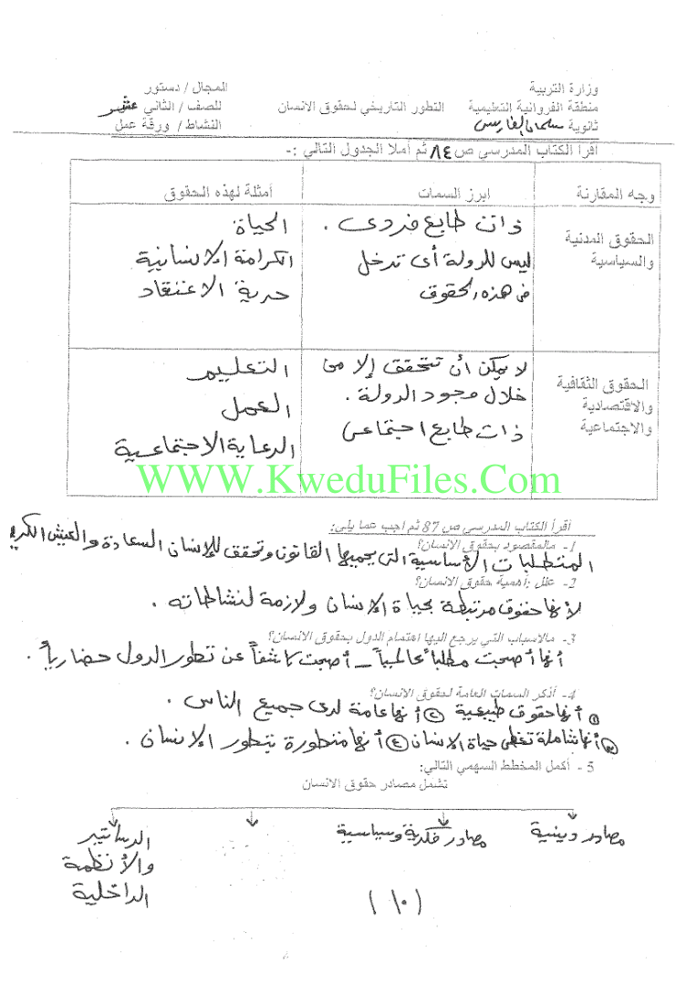10. مذكرة إثرائية (لاتغني عن الكتاب المدرسي)