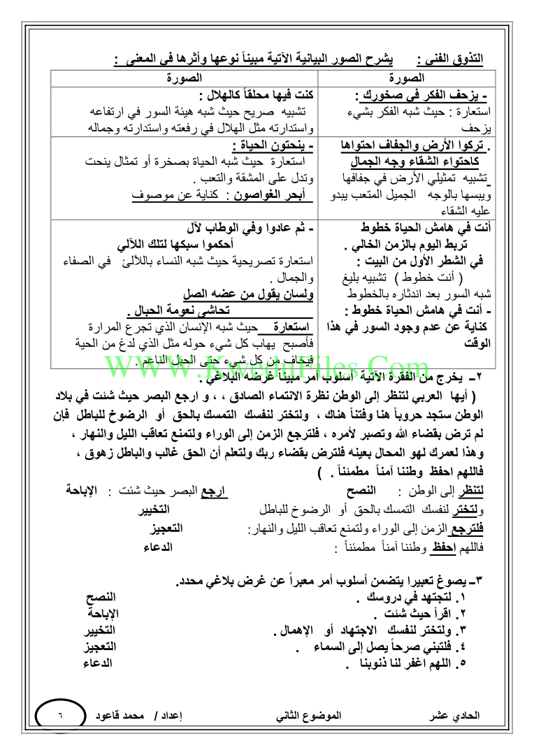 أحدث ملفات الصف الحادي عشر, لغة عربية, الفصل الأول