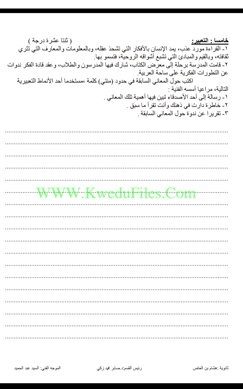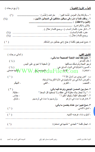 تم إيجاد الملف: نموذج امتحان مهم للكورس الاول في مادة اللغة العربية