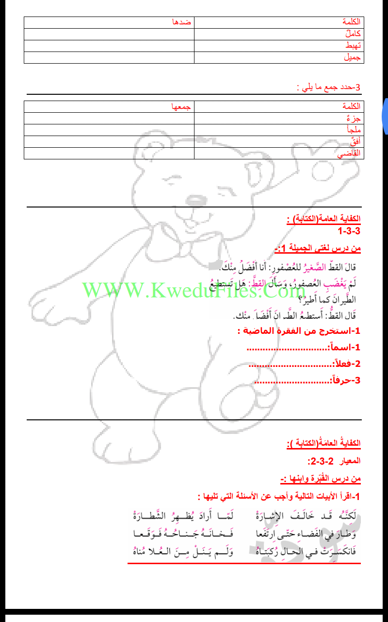 تم إيجاد الملف: مذكرة للوحدة الاولى فقط في مادة اللغة العربية