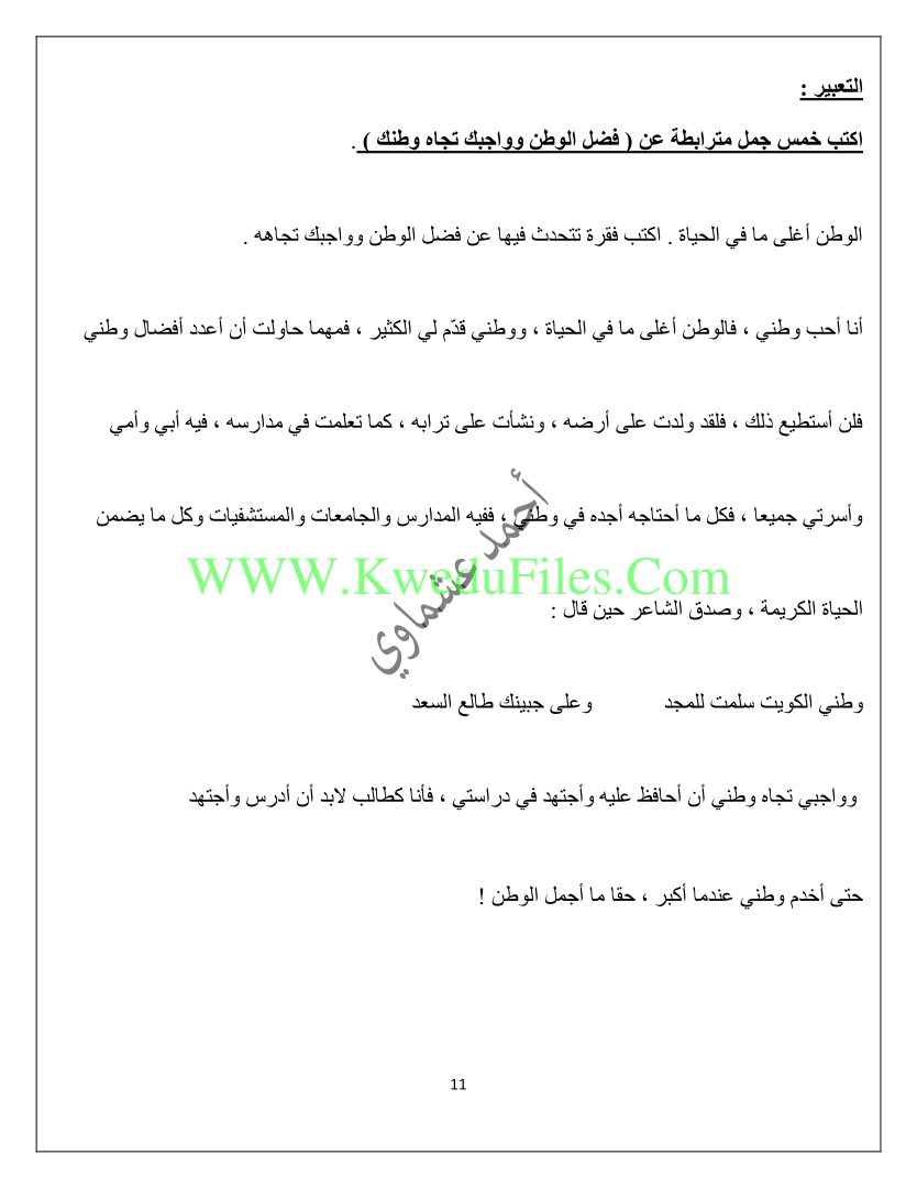 معلومات الملف: 11ورقة في مادة اللغة العربية للصف الخامس للكورس الاول تتضمنمذكرةالنشيد الوطني | ||