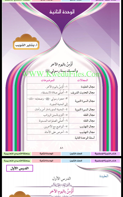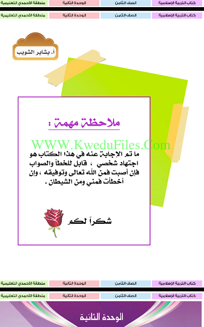 تم إيجاد الملف: الوحدة الثانية مع الاجابة والانشطة في مادة التربية الاسلامية