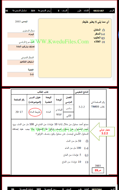 تم إيجاد الملف: حل تدرييات على انماط اسئلة التيمز في مادة العلوم