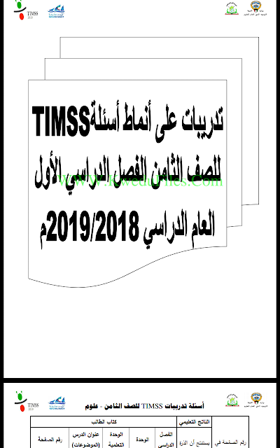 معلومات الملف: تدريبات على انماط اسئلة التيمز في مادة العلوم للصف الثامن للكورس الاول عدد اوراق هذا الملف 32ورقة مع العلم ان صور الملف ادناه لاتحتوي الا على جزء من محتوى الملف الذي ستجدهكاملا" عند تحميله