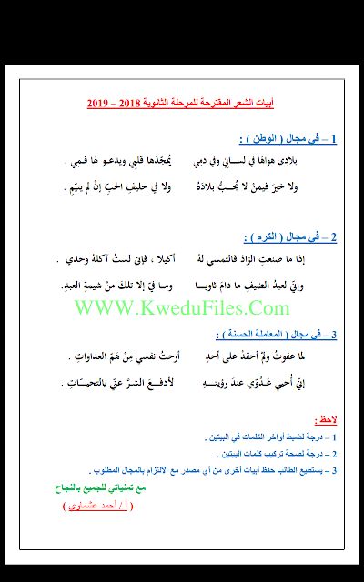 ابيات الشعر للمرحلة الثانوية لعام - إعداد: العشماوي