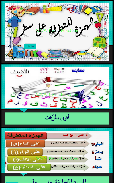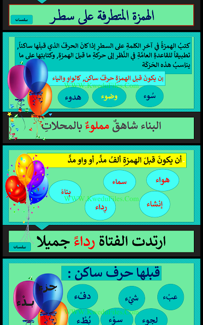 تحضير الهمزة المتطرفة على السطر في مادة اللغة العربية - إعداد: بيلسان | ||