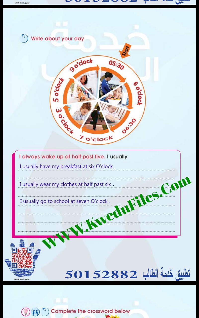 5اوراق في مادة اللغة الانكليزية للصف الثالث للكورس الاول تتضمن حل الوحدة الثانية