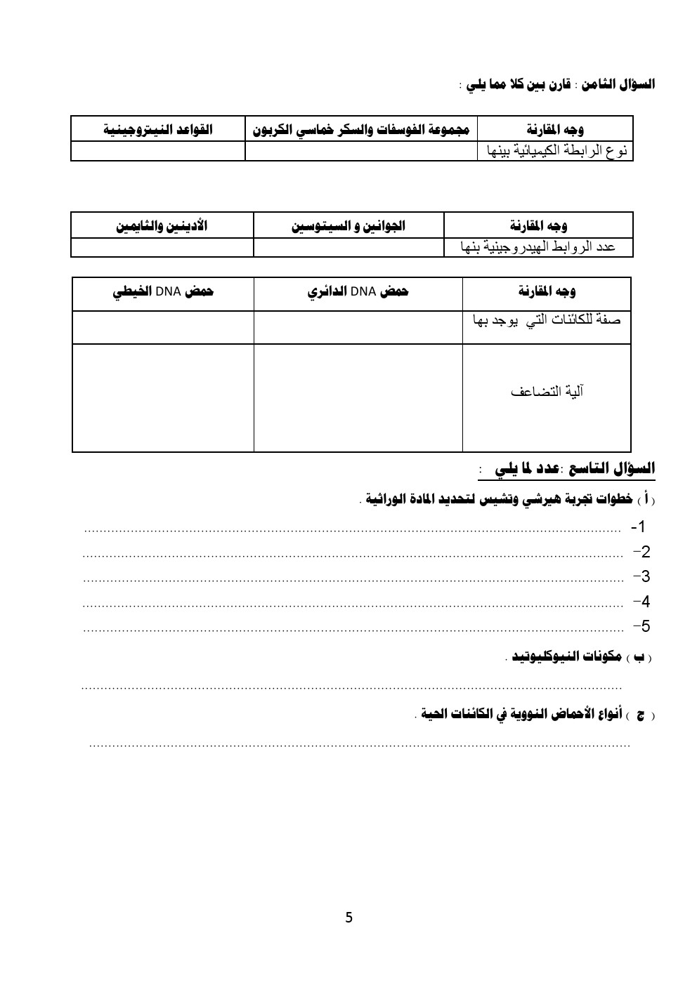 5. ملخص إضافي لمادة الأحياء - الطبعة الثانية