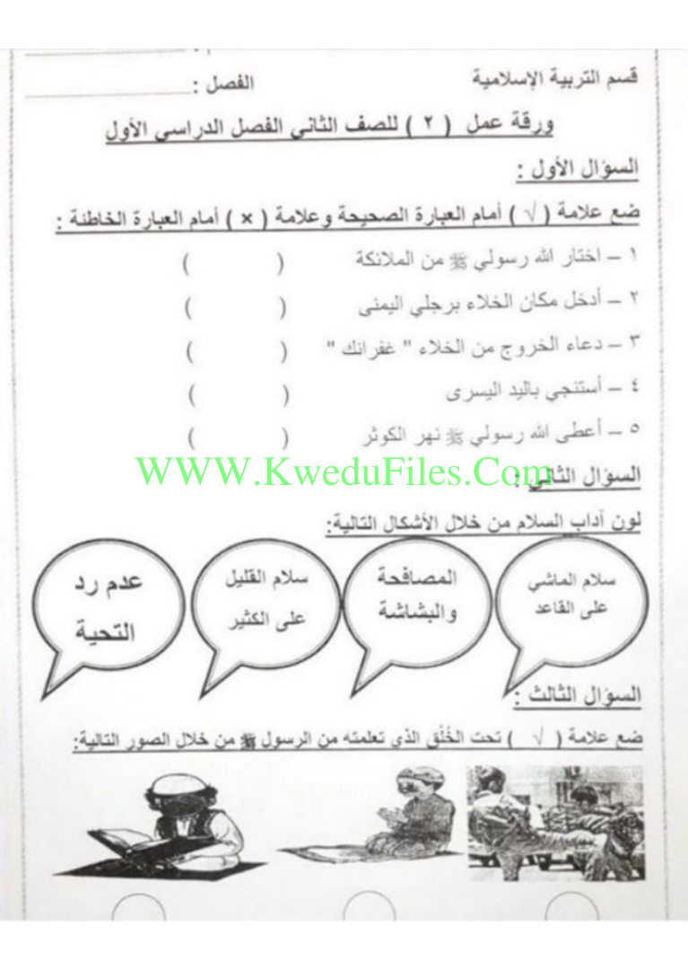 أحدث ملفات الصف الثاني, تربية اسلامية, الفصل الأول