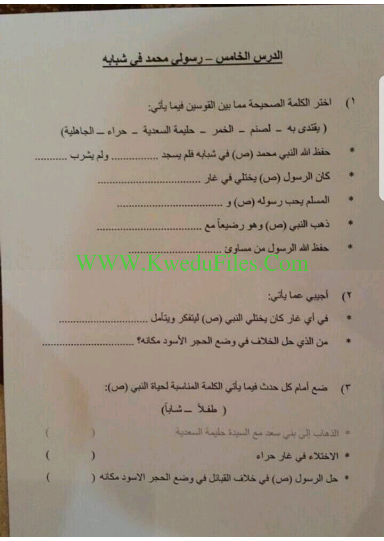 اوراق عمل مجمعة لمادة التربية الاسلامية مفيدة جدا" للطالب