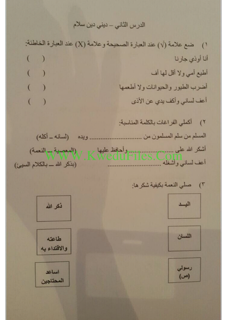 اوراق عمل مجمعة لمادة التربية الاسلامية مفيدة جدا" للطالب | ||