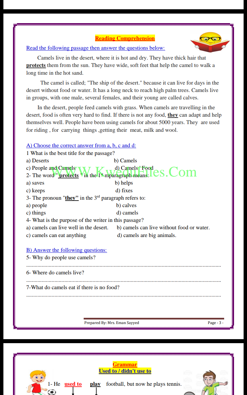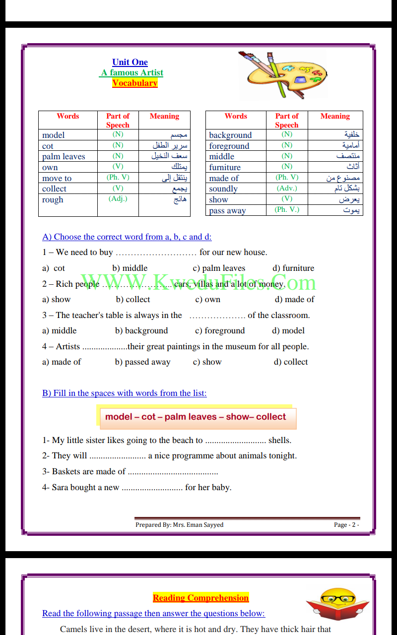 12. الصف الخامس, لغة انجليزية, حل الوحدة الثانية من كتاب التدريبات