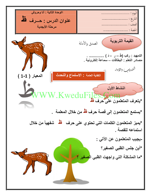 4اوراق في مادة اللغة العربية للصف الاول للكورس الاول تتضمن تدريبات على حرف الظاء