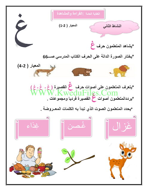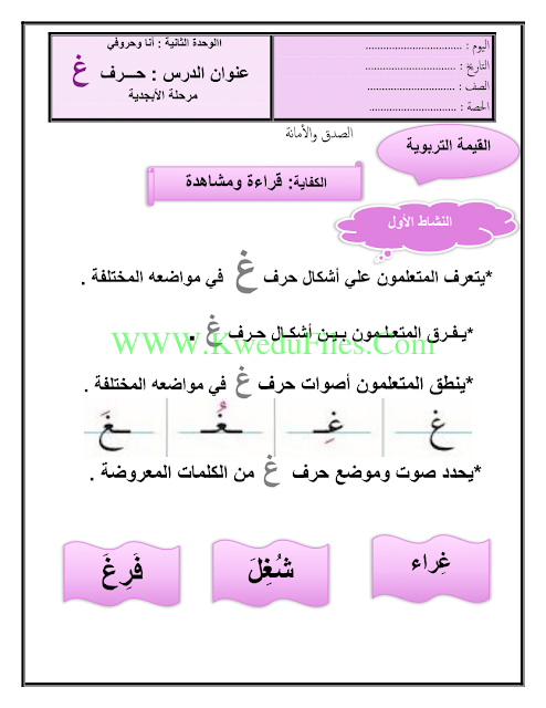 تم إيجاد الملف: تدريبات على حرف الغين في مادة اللغة العربية