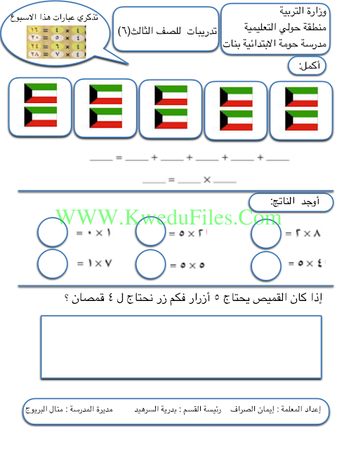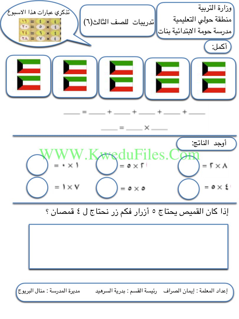 أنت هنا: موقع المناهجالمناهج الكويتية الصف الثالث رياضيات الفصل الأول أوراق عمل