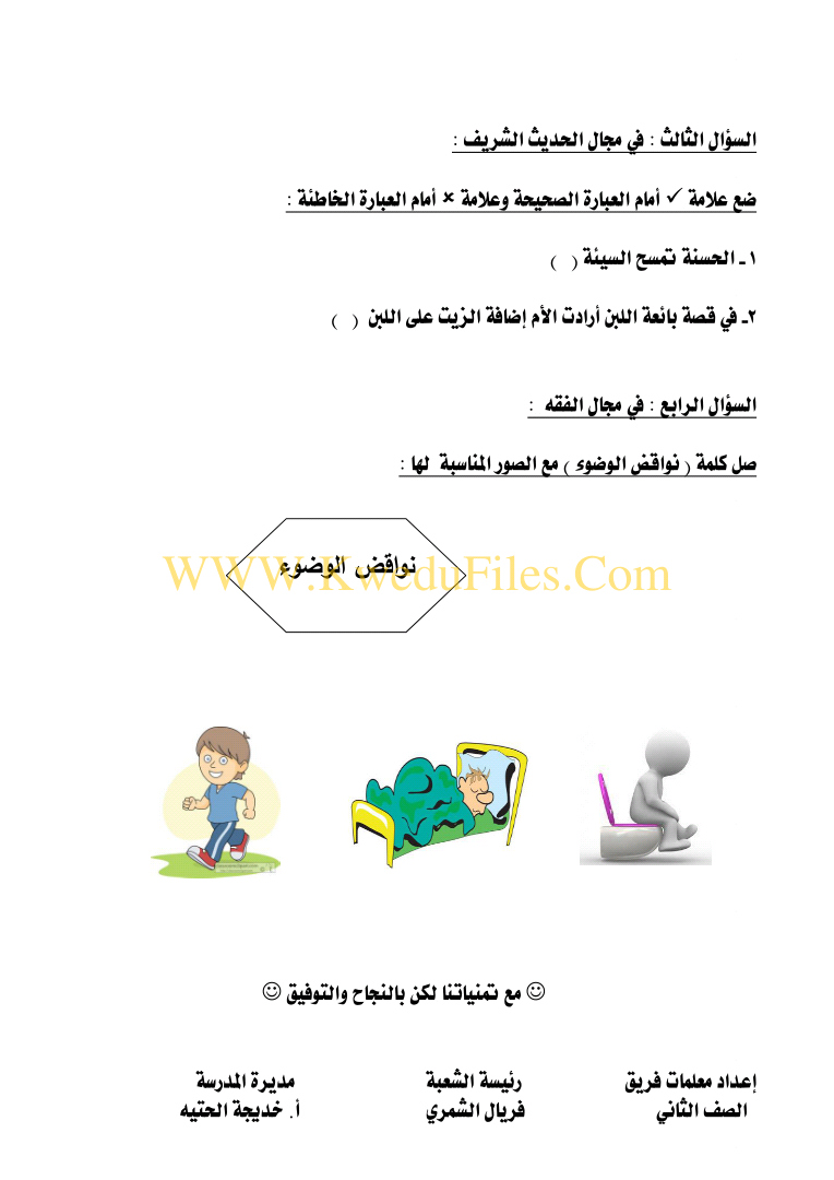 ورقتين في مادة التربية الاسلامية للصف الثاني للكورس الاول تتضمنمراجعةمفيدة للطالب