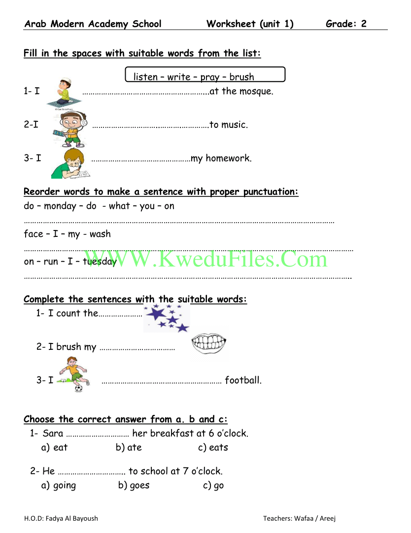 تم إيجاد الملف: اوراق عمل للوحدة الثانية في مادة اللغة الانكليزية