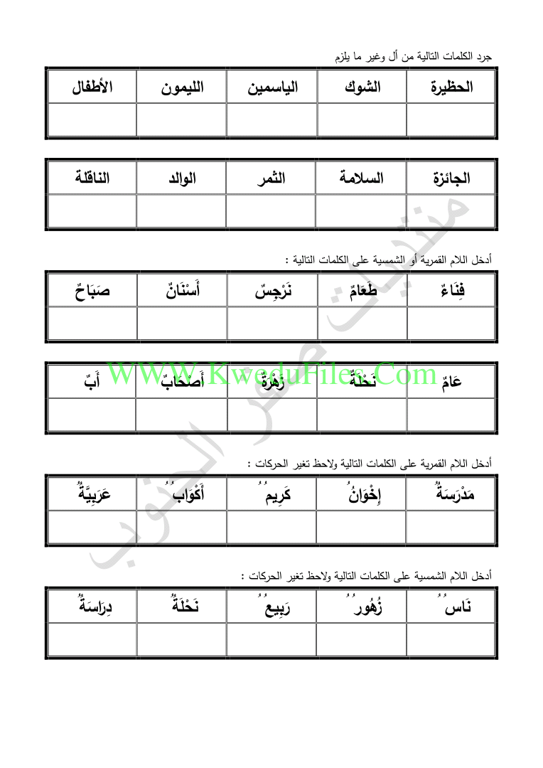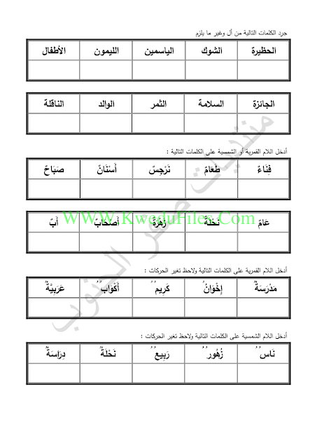 14. ورقة عمل عن اللام الشمسية والقمرية