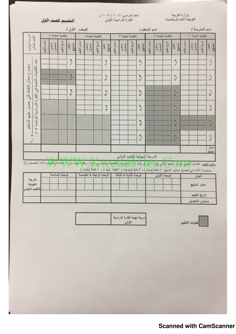 1. آلية التقييم للمرحلة الابتدائية