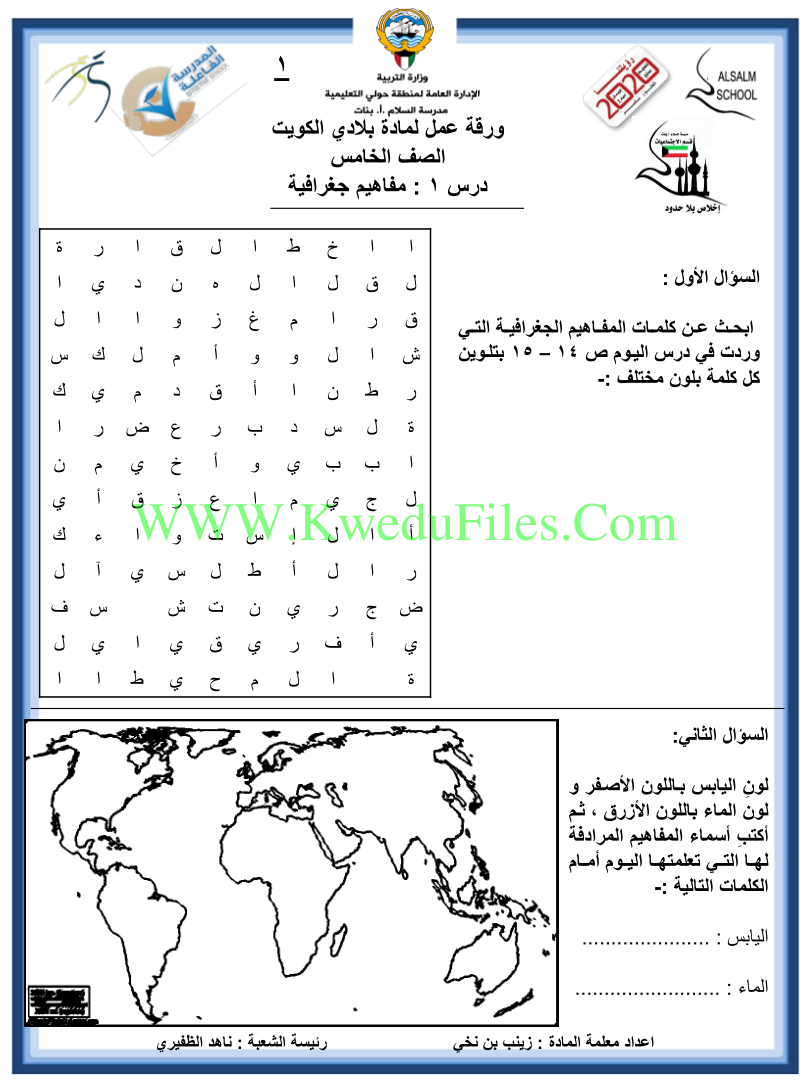 | أنت هنا: موقع المناهج ⇦ المناهج الكويتية ⇦ الصف الخامس ⇦ اجتماعيات ⇦ الفصل الأول ⇦ أوراق عمل |