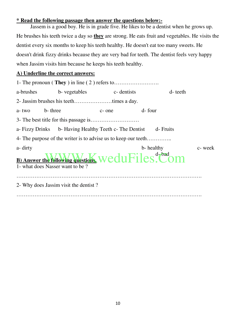 تم إيجاد الملف: نموذج اختبار وتدريبات مهمة في مادة اللغة الانكليزية