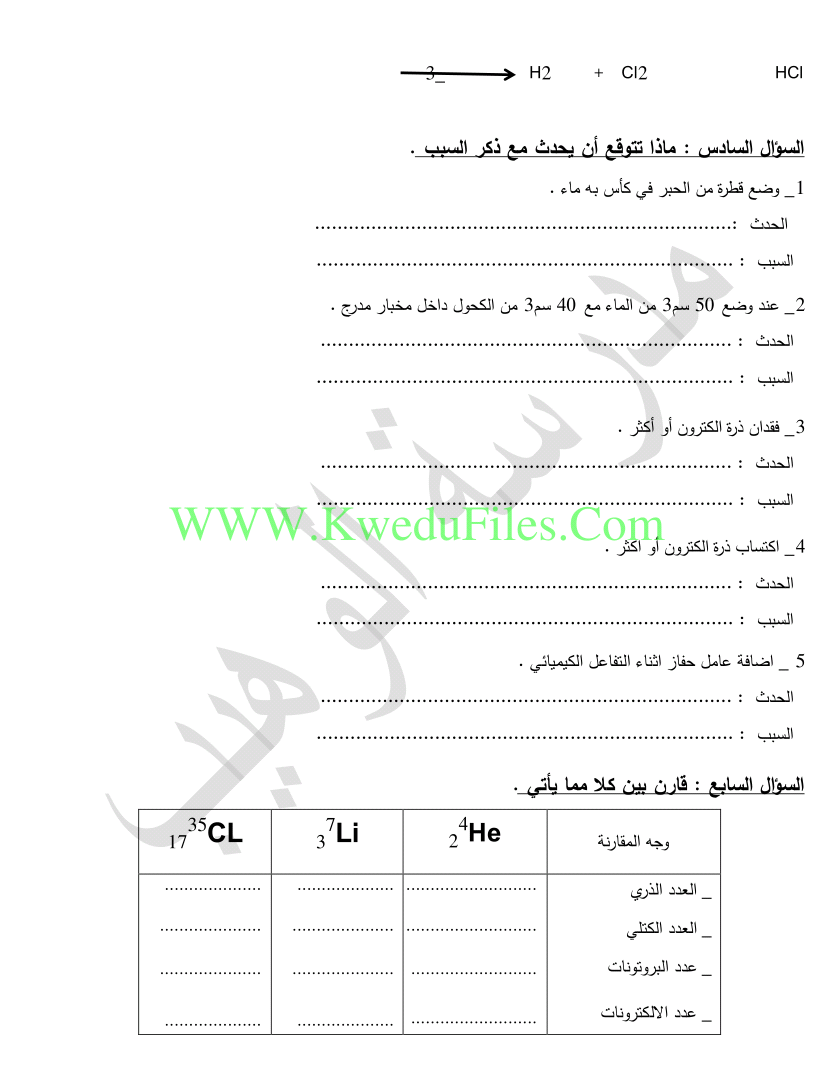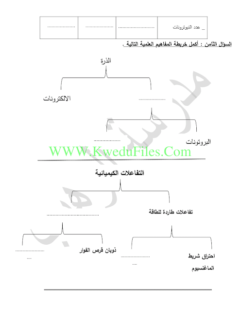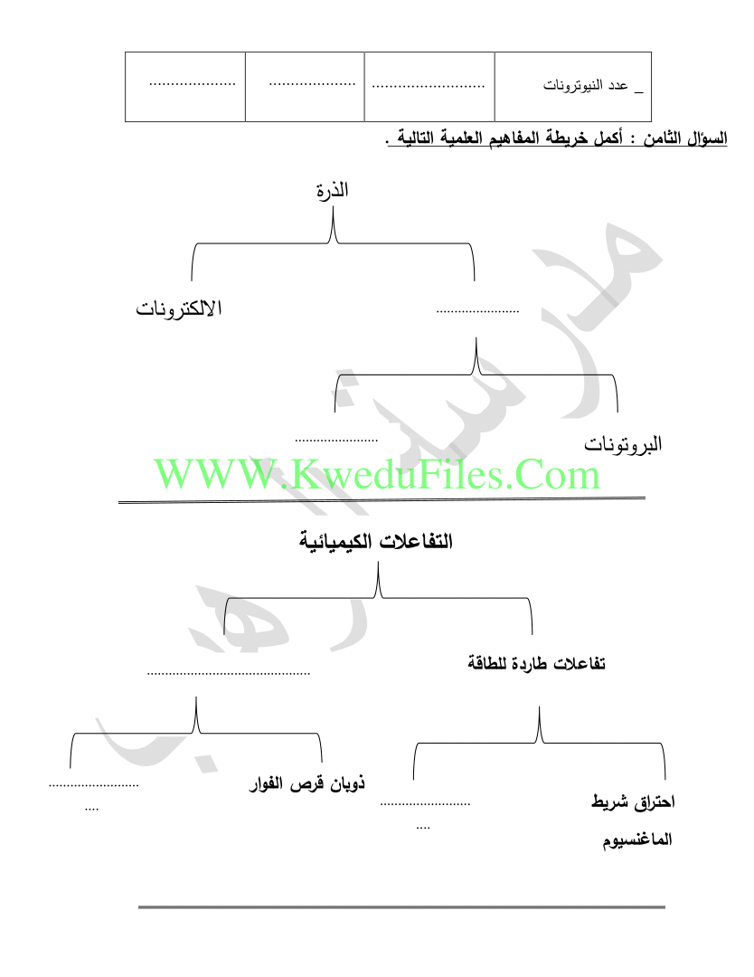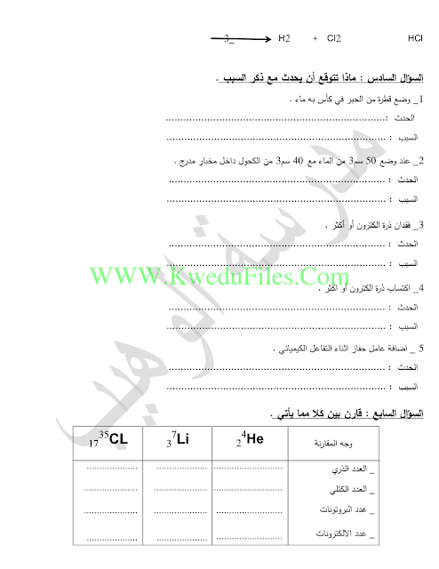 7اوراق في مادة العلوم للصف الثامن للكورس الاول تتضمن بنك اسئلة