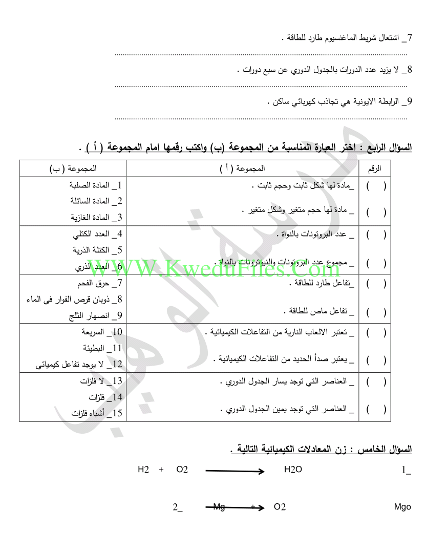بنك اسئلة للمنهج الجديد في مادة العلوم