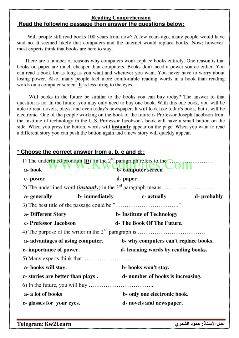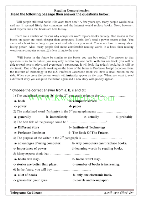 تنويه: المناهج الكويتية هو موقع مجاني وغير رسمي ولا يتطلب اشتراك لتحميل الملفات، لذلك يرجى عدم دفع أي مبلغ أو الاشتراك من أجل تحميل الملفات.