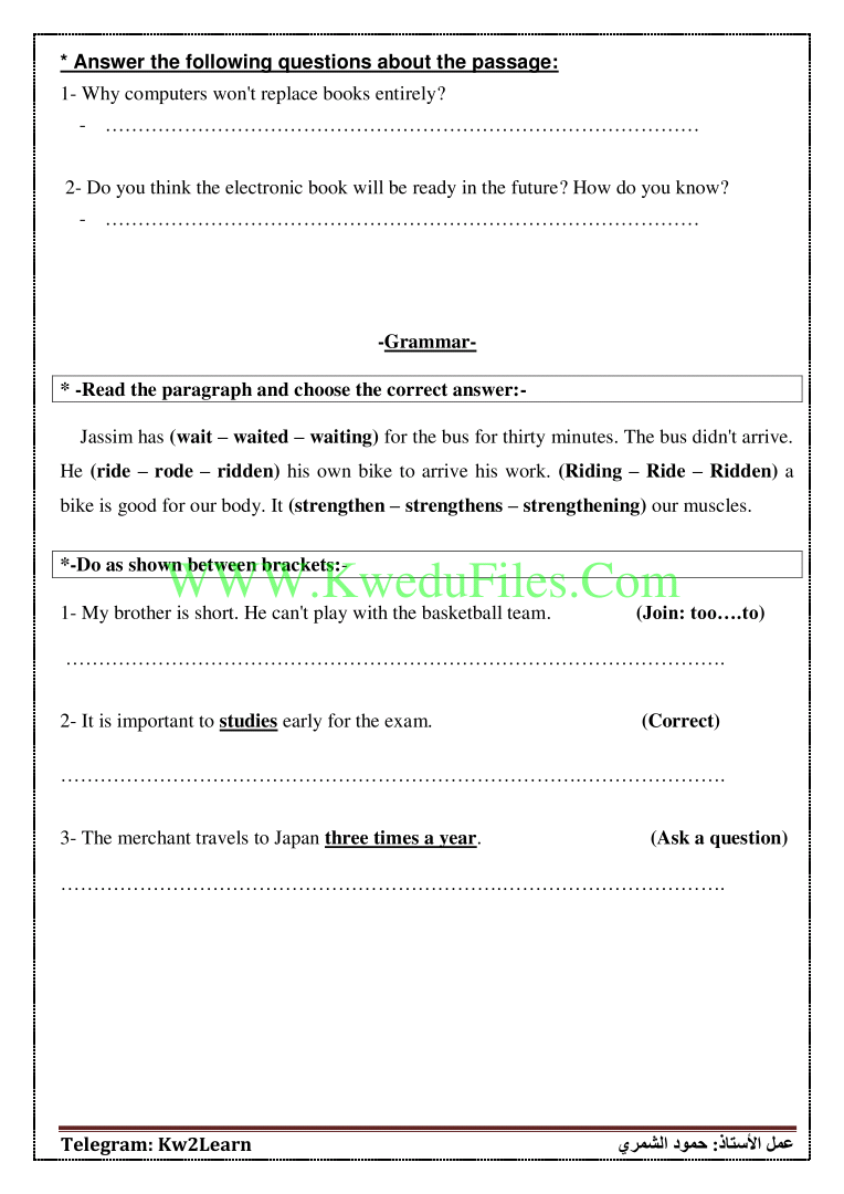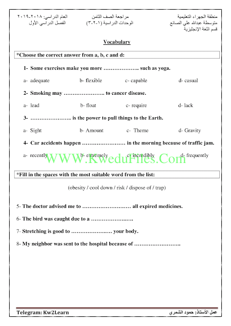 | السابق: نموذج اختبار في مادة اللغة الانكليزية منهج جديد | الملف الحالي: 2222 | التالي: أسئلة اختبار تجريبي لمنطقة حولي التعليمية |