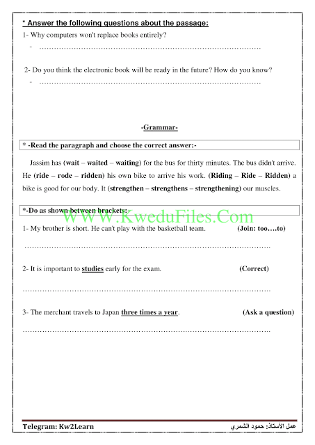 نموذج اجابة اختبار في مادة اللغة الانكليزية منهج جديد