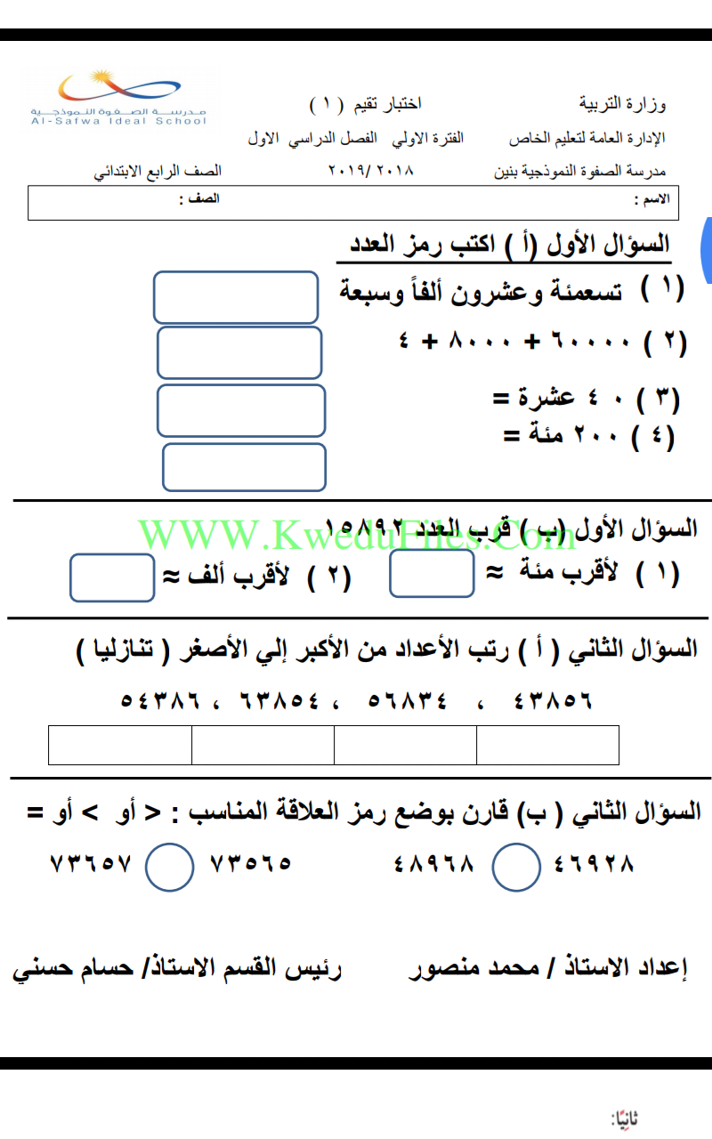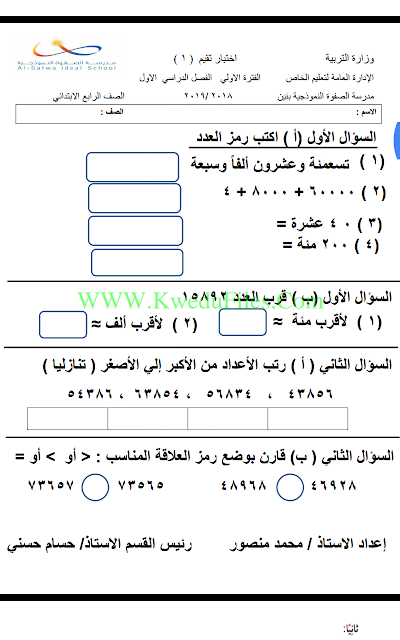 أنت هنا: موقع المناهج ⇦ المناهج الكويتية ⇦ الصف الرابع ⇦ رياضيات ⇦ الفصل الأول ⇦ مذكرات وبنوك |