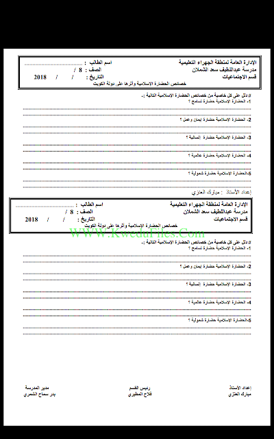 أنت هنا: موقع المناهجالمناهج الكويتية الصف الثامن اجتماعيات الفصل الأول أوراق عمل