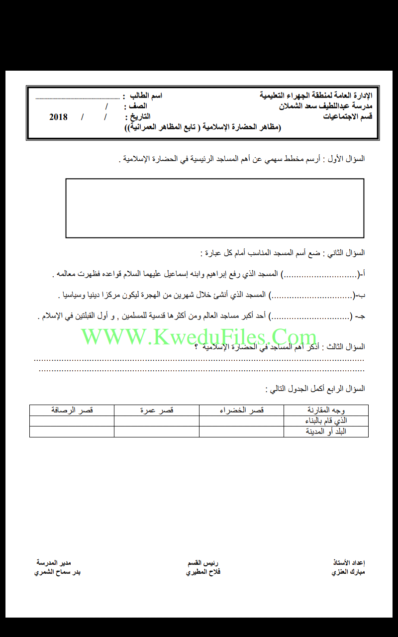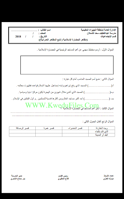 ورقة عمل تابعة للمظاهر العمرانية في مادة الاجتماعيات - إعداد: مبارك العنزي