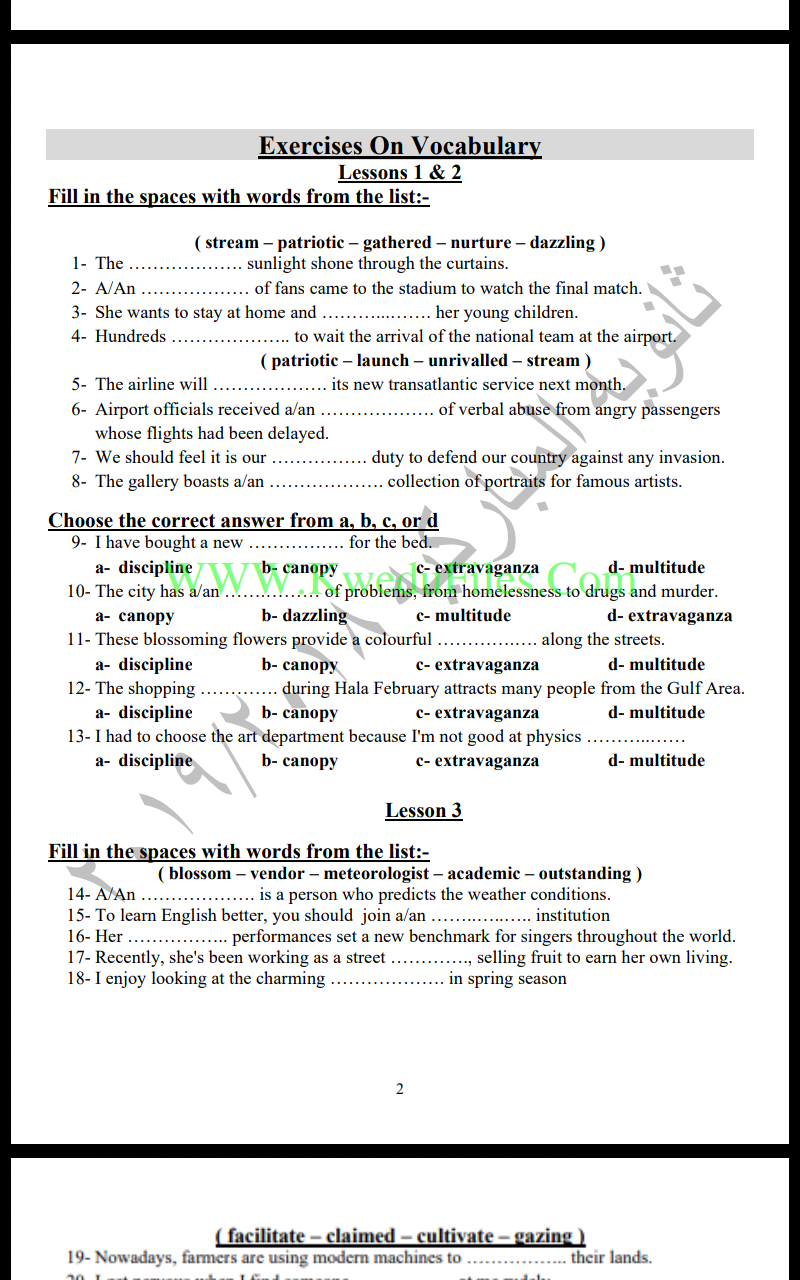 | مذكرة ثانوية المباركية في مادة اللغة الانكليزية - إعداد: ثانوية المباركية | ||