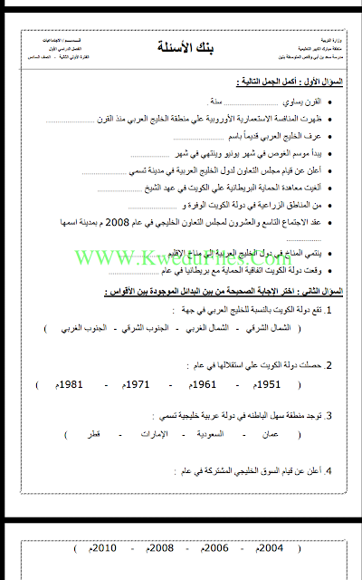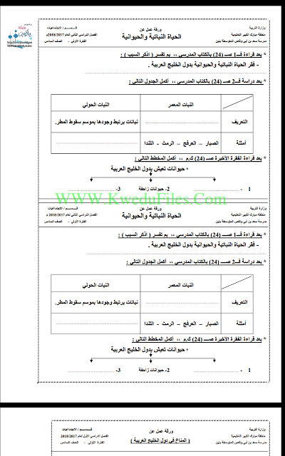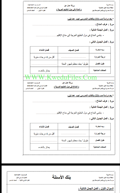 أنت هنا: موقع المناهجالمناهج الكويتية الصف السادس اجتماعيات الفصل الأول أوراق عمل