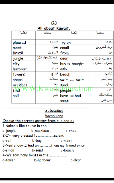 أحدث ملفات الصف الثالث, لغة انجليزية, الفصل الأول