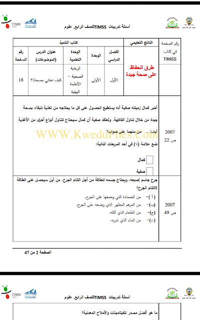 تدريبات على انماط اسئلة التيمز للعام الدراسيفي مادة العلوم | ||