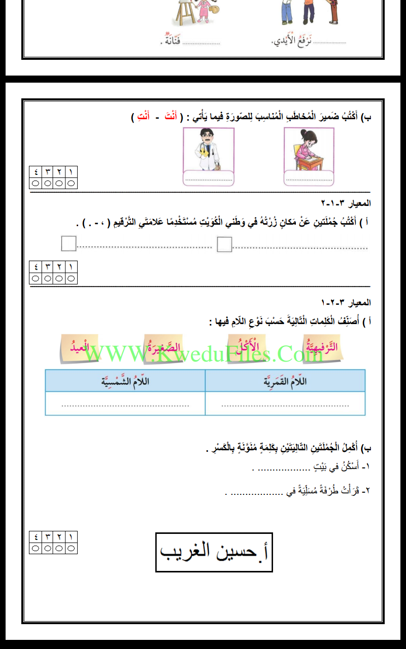 نموذج اختبار قصير في مادة اللغة العربية للوحدة الثانية - إعداد: حسين الغريب