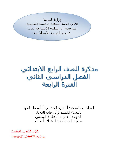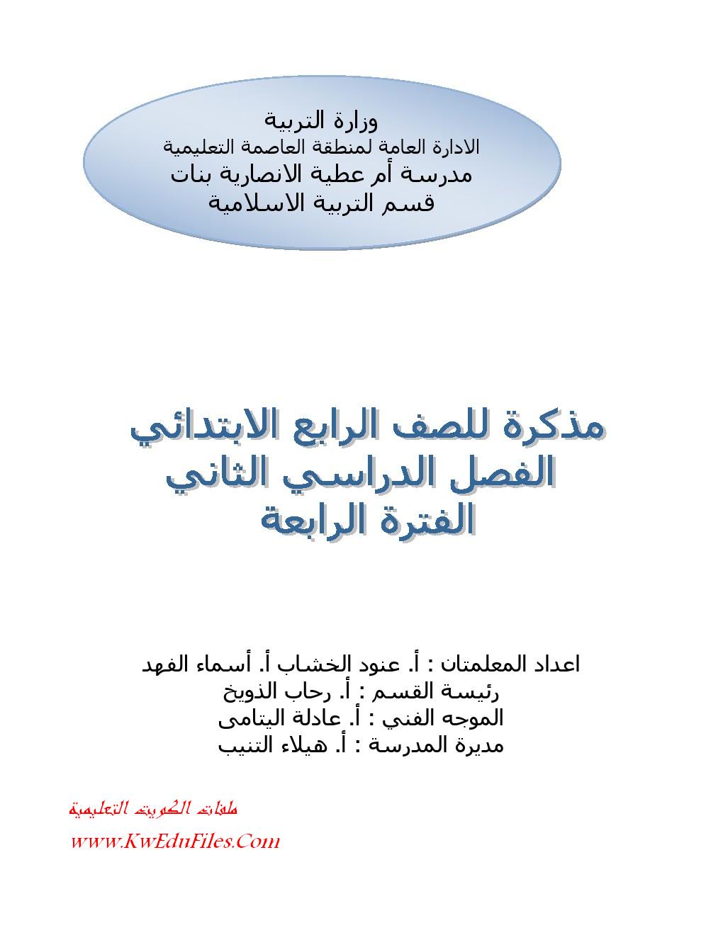 أحدث ملفات الصف الرابع, تربية اسلامية, الفترة الرابعة |